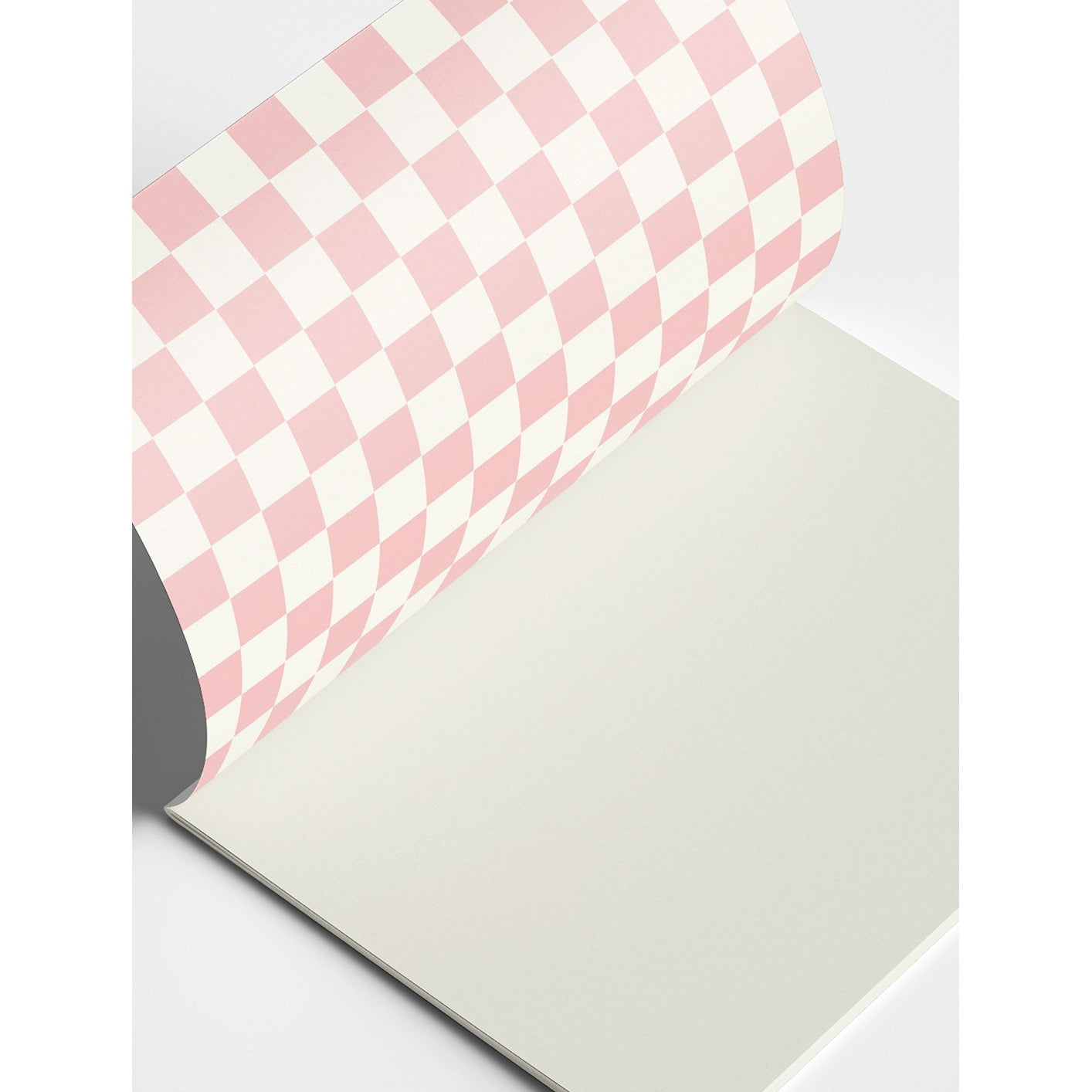 Goes wonderfully with our pink concept store: the notebook from redfries from Regensburg with a large pink and white checkerboard pattern.